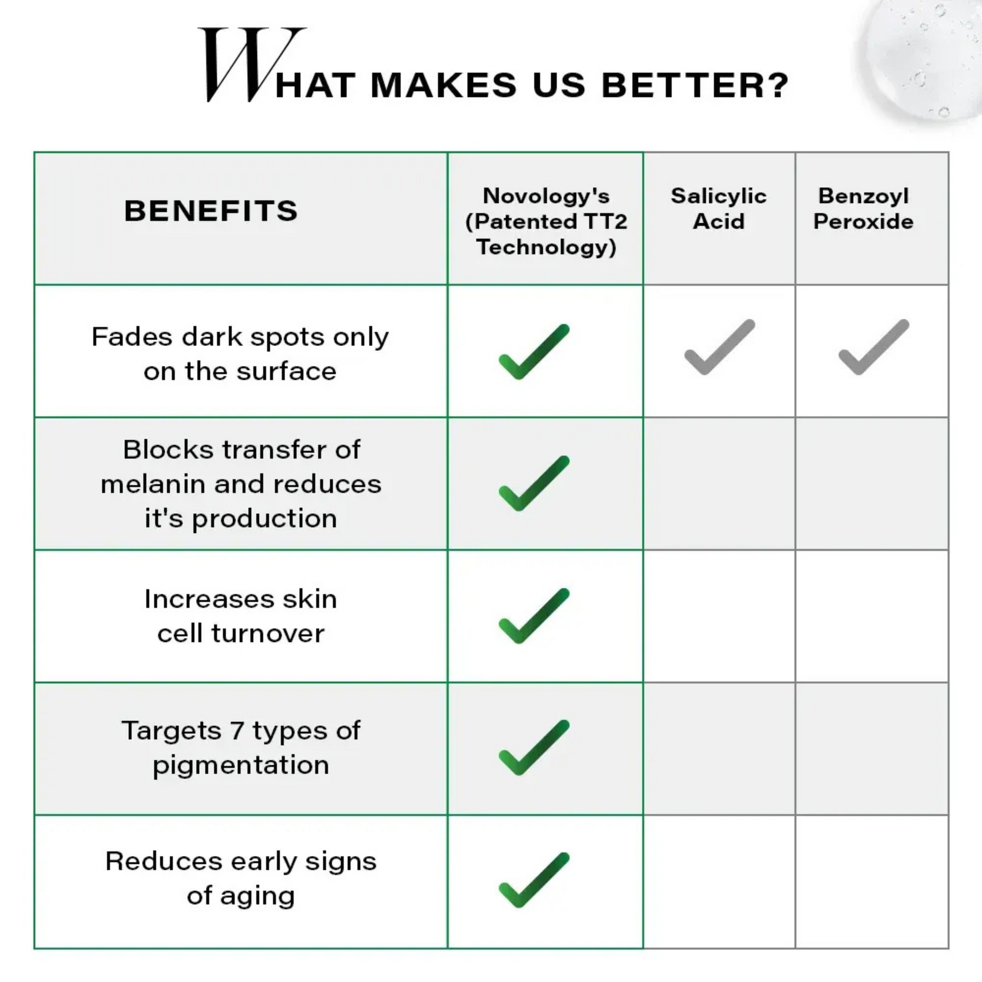 - Targets 7 Types of Acne & Blemishes – Active acne, whiteheads, blackheads, excess sebum, enlarged pores, uneven texture, and dark spots.