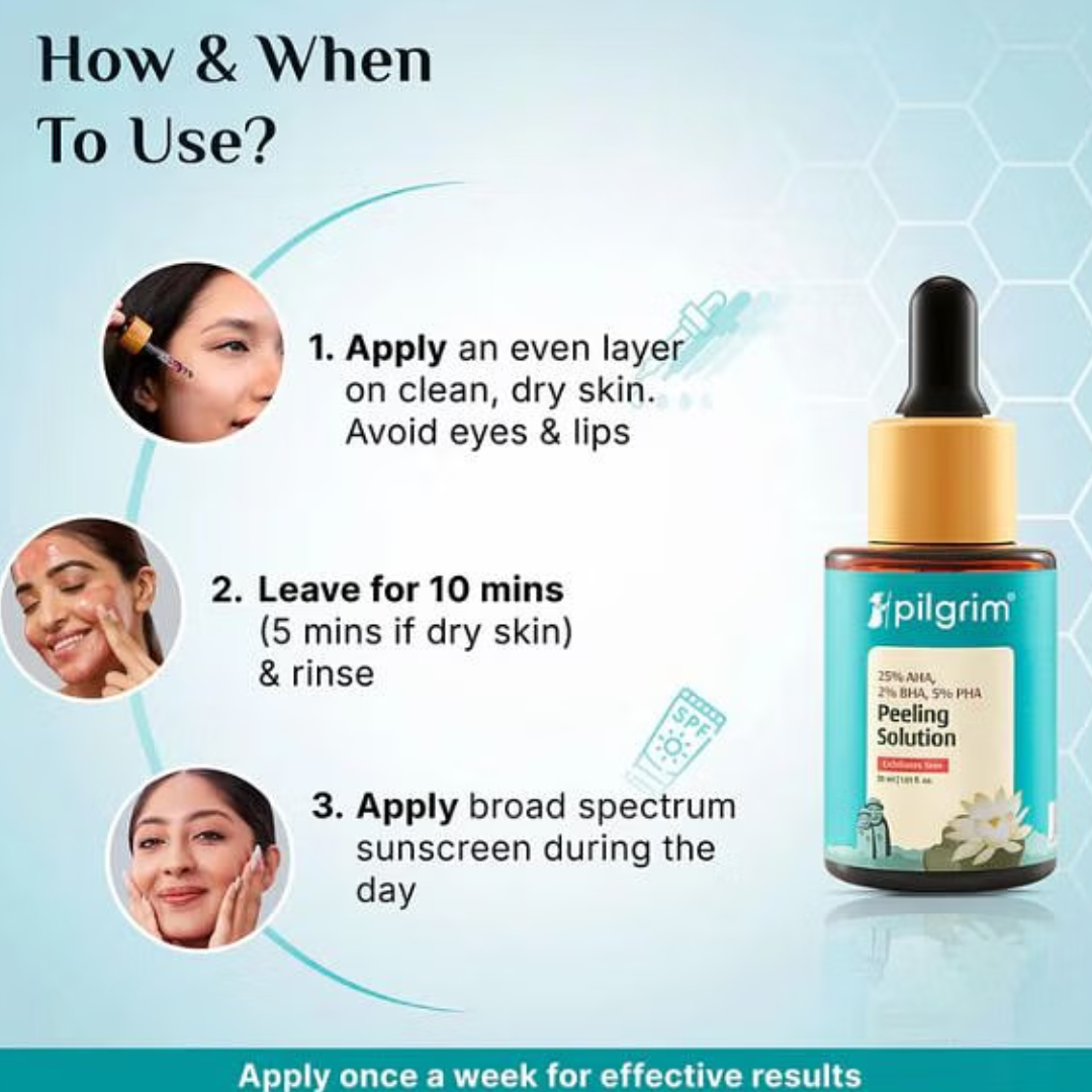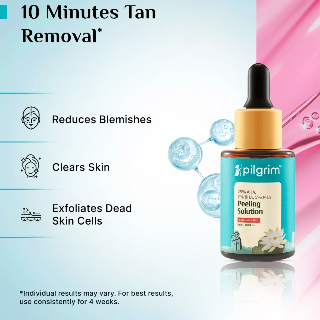 Pilgrim 25% AHA + 2% BHA + 5% PHA Peeling Solution Face Serum for Exfoliation|10 Minutes DeTan Challenge