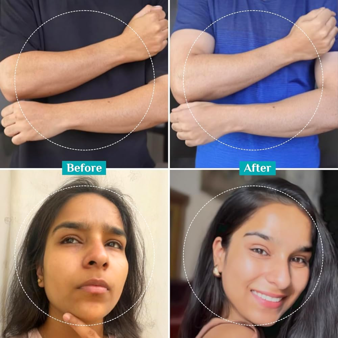 ✅ Before & After transformations show reduced tan, smoother texture & radiant skin.